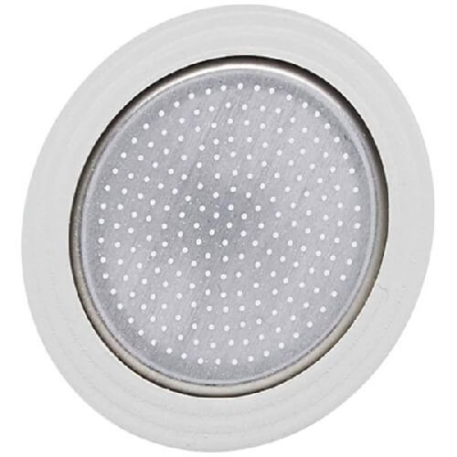 Joint en caoutchouc et tamis en acier inoxydable pour cafetières inox 6 tasses Bialetti. Contient 1 joints et 1 filtre en acier inoxydable / Joint : Diamètre extérieur : 73 mm - Diamètre intérieur : 57 mm / Filtre inox : Diamètre : 67 mm / Pour cafetières italiennes VÉNUS, KITTY, MUSA et CLASS de la marque BIALETTI. article neuf emballage d'origine / 8006363034432