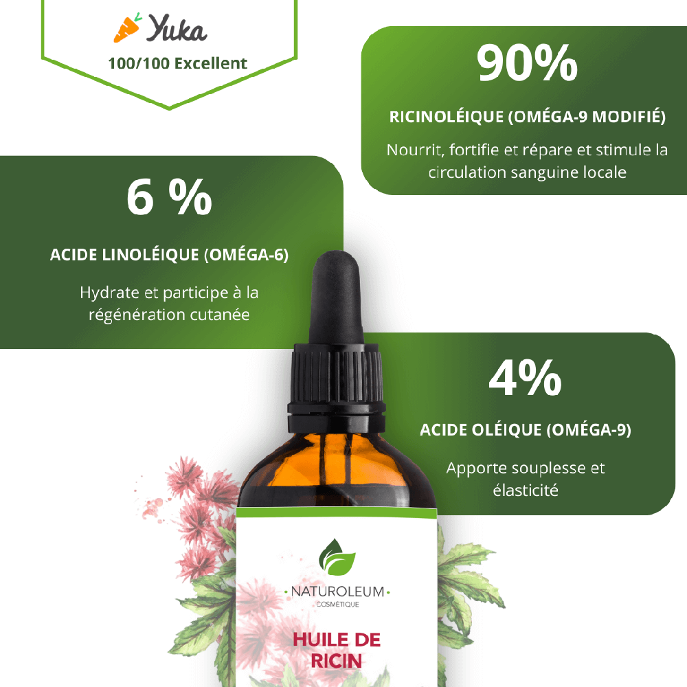 Haute Qualité et Pure : Notre huile de ricin bio est pressée à froid pour conserver tous ses bienfaits naturels et sa pureté. C’est une huile capillaire 100 % naturelle, parfaite pour tous les types de peau et de cheveux.